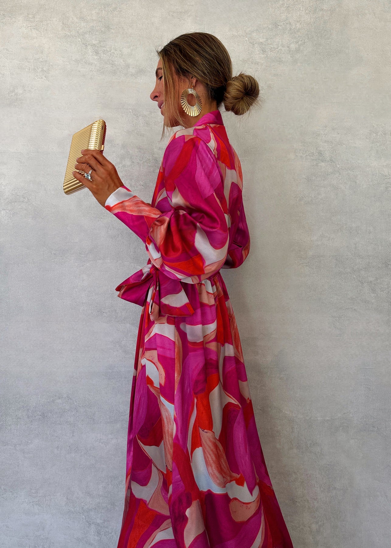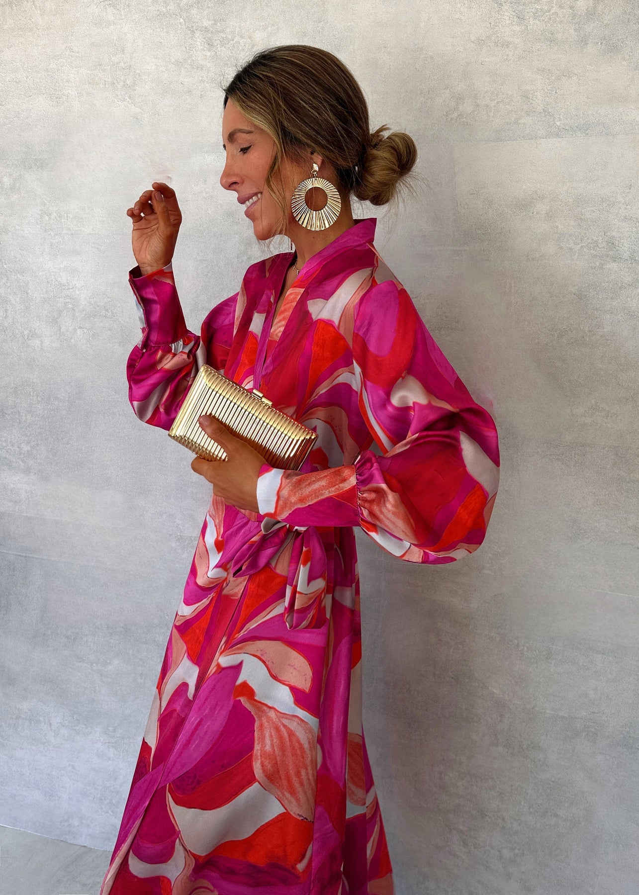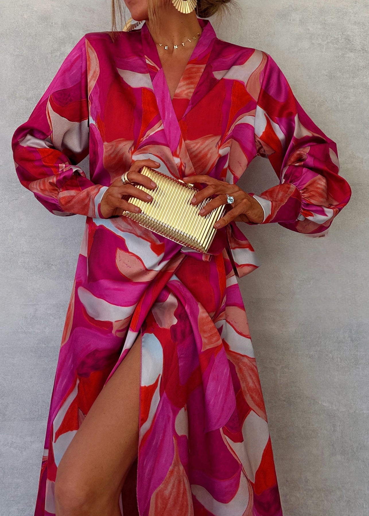 Con la sua stampa vivace, il taglio avvolgente e il tocco di seta lucente, è perfetto per serate estive, feste o una cena in vacanza.